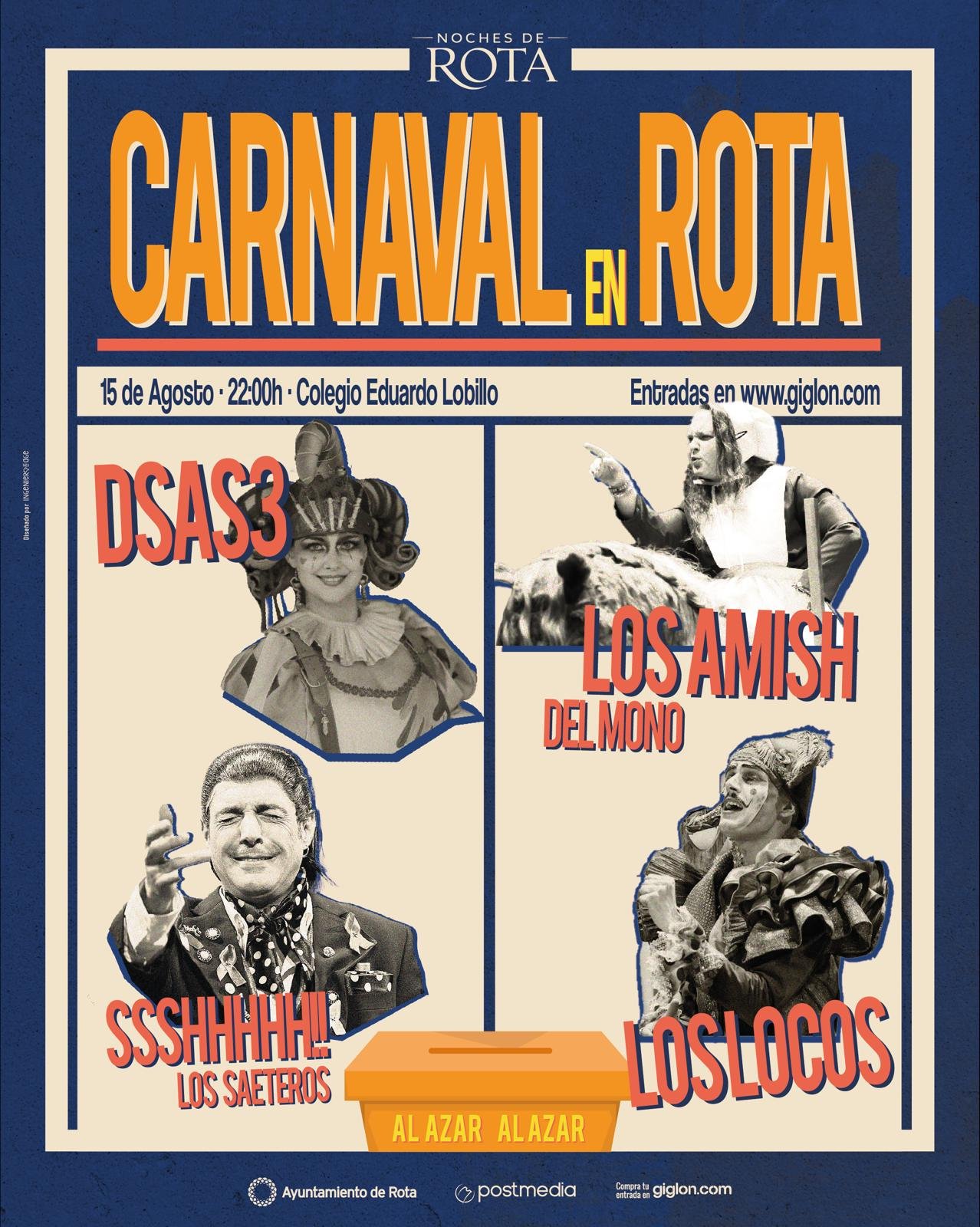 Ago 15 Gran Noche de Carnaval en Rota 22:00 - 23:59 Colegio Maestro Eduardo Lobillo Calle Neptuno, 4, Rota Detalles de Evento Cómo llegar