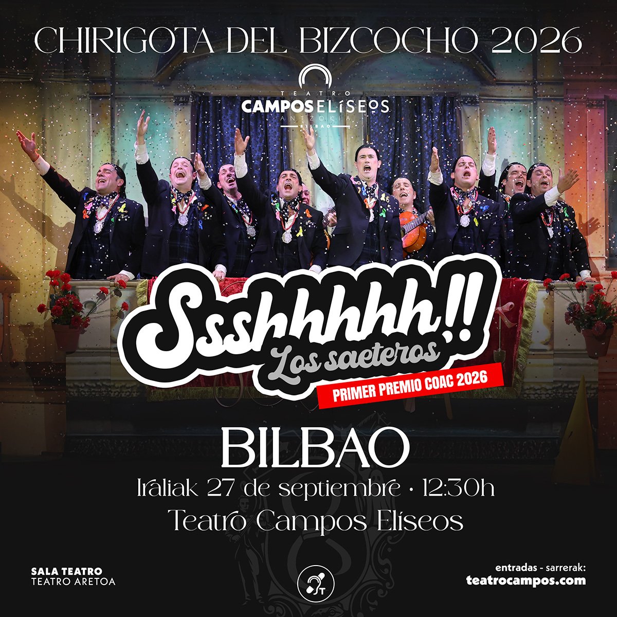 «Ssshhhhh!!» en Bilbao 27 septiembre // 12:30 - 14:00 Teatro Campos Elíseos Antzokia C. de Bertendona, 3, Bilbao, Bizkaia 22€ Comprar entradas